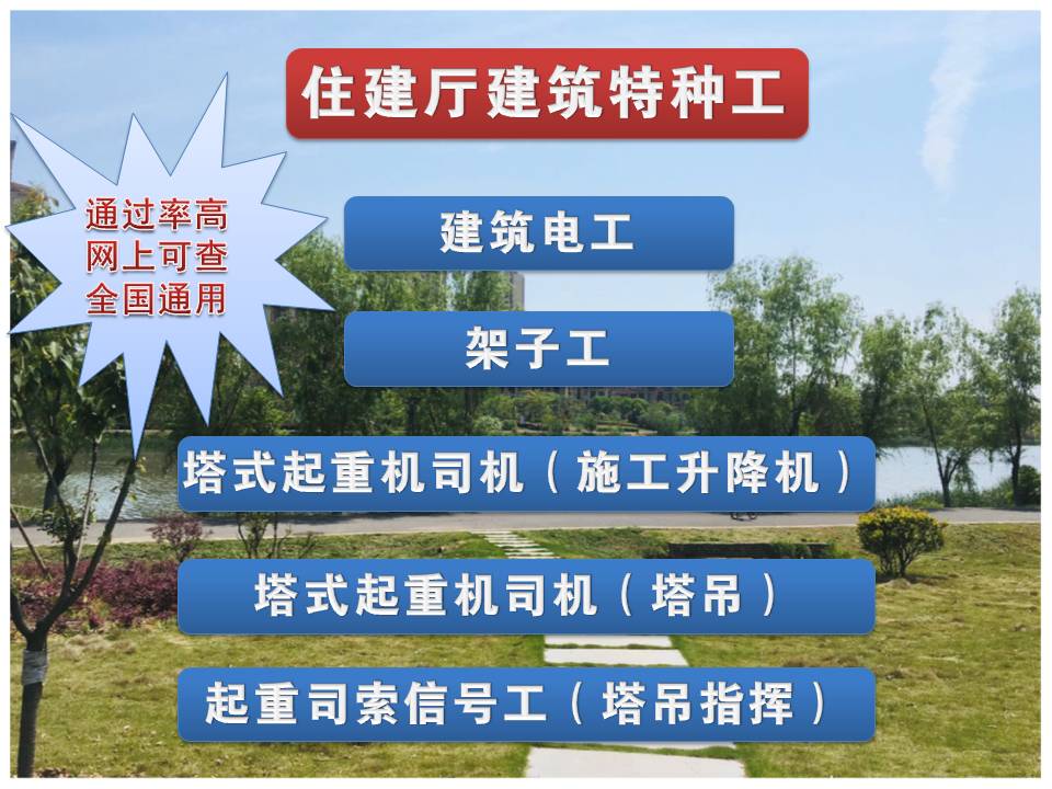 4、建筑起重机械司机(施工升降机, 塔吊):在建筑工程施工现场从事施工升降机、塔吊的驾驶操作;
